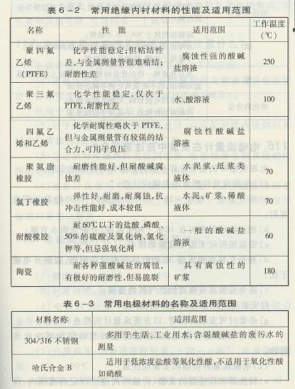 電磁流量計的襯里和電極直接與被測介質接觸,在選擇所用材料時,應從介質的腐蝕性、磨損性及介質的溫度等幾個方面加以考慮。
